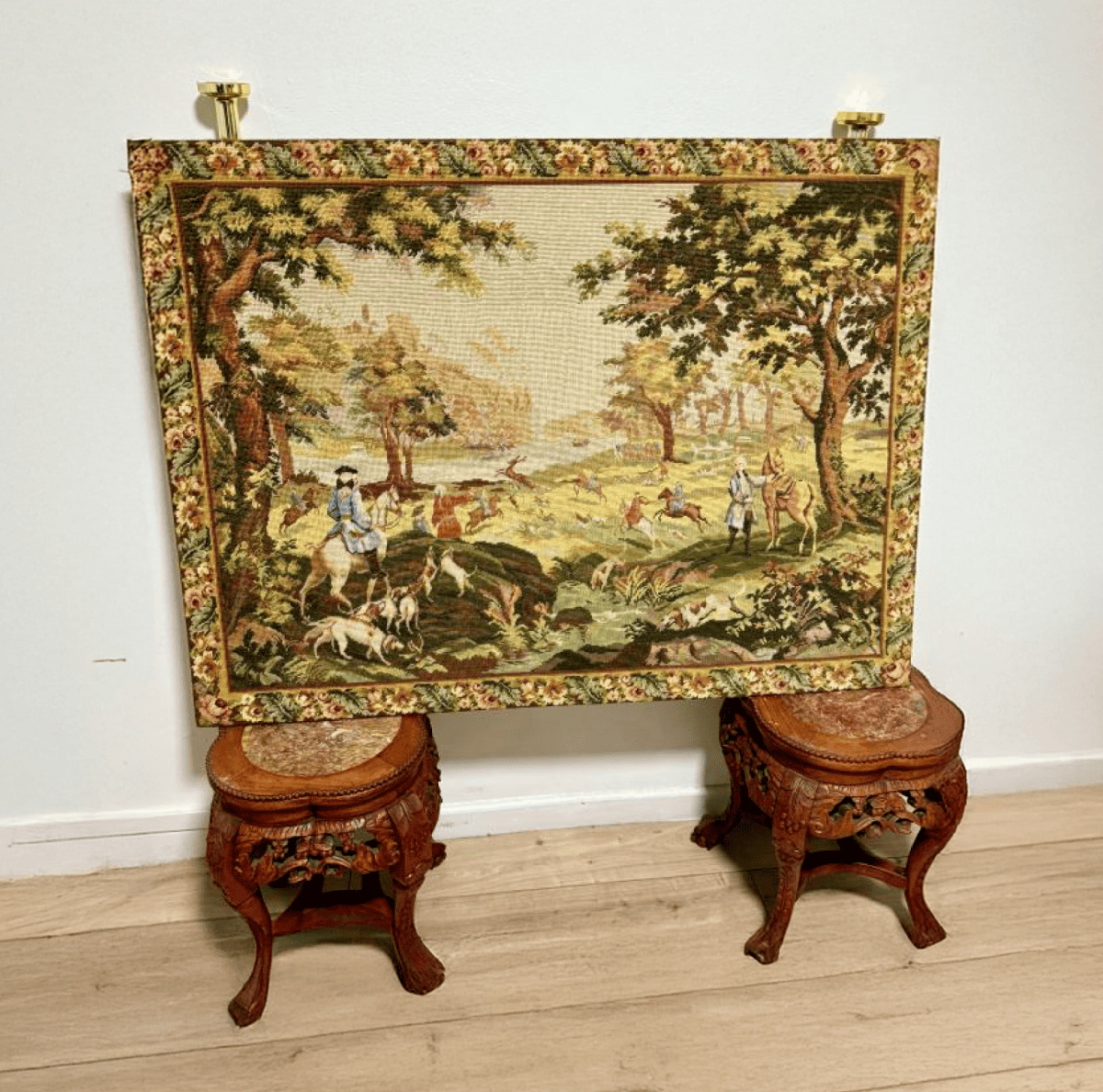 Espectacular Gobelino de tapicería hecho a mano en perfecto estado, incluye soporte para anclar en la pared. Periodo: 1900-1920